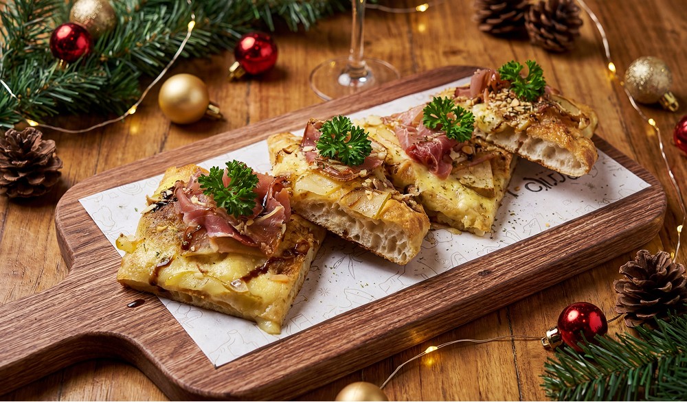 Nuestra inmejorable pizza romana estilo in teglia, cuadrada, crujiente y esponjosa, coronada con ingredientes italianos.